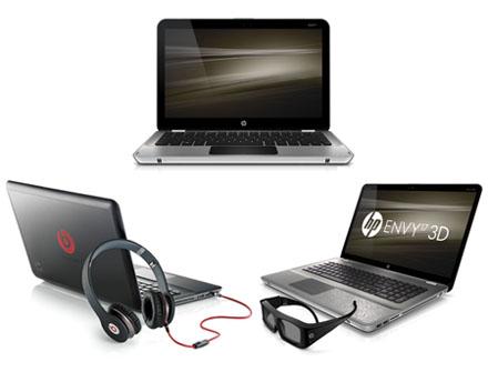 * No total são três laptops, todos com processador Intel Core i, claro. O Envy 14, além de ter um design superbacana, com textura em relevo na tampa, vem com download ilimitado de músicas do site da gravadora Universal Music por um ano! Já o Envy 17 é para os apaixonados por cinema. É que ele possui tecnologia 3D e vem com óculos especias para curtir os filmes. E, por fim, o Envy Beats, que tem um dos acessórios mais cobiçados do momento: o fone de ouvido Dr. Dre. É para ligar o play e esquecer do mundo!
