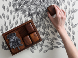O projeto Bioma, coletivo de artistas e designers Ana Neute, Otávio Coelho e Thiago Fink, abrem exposição com caixas e carimbos de espécies nativas como Cabreúva, Imbuia, Sucupira, Freijó, Jequitibá Rosa e Angelim Pedra, em parceria com a Etel.