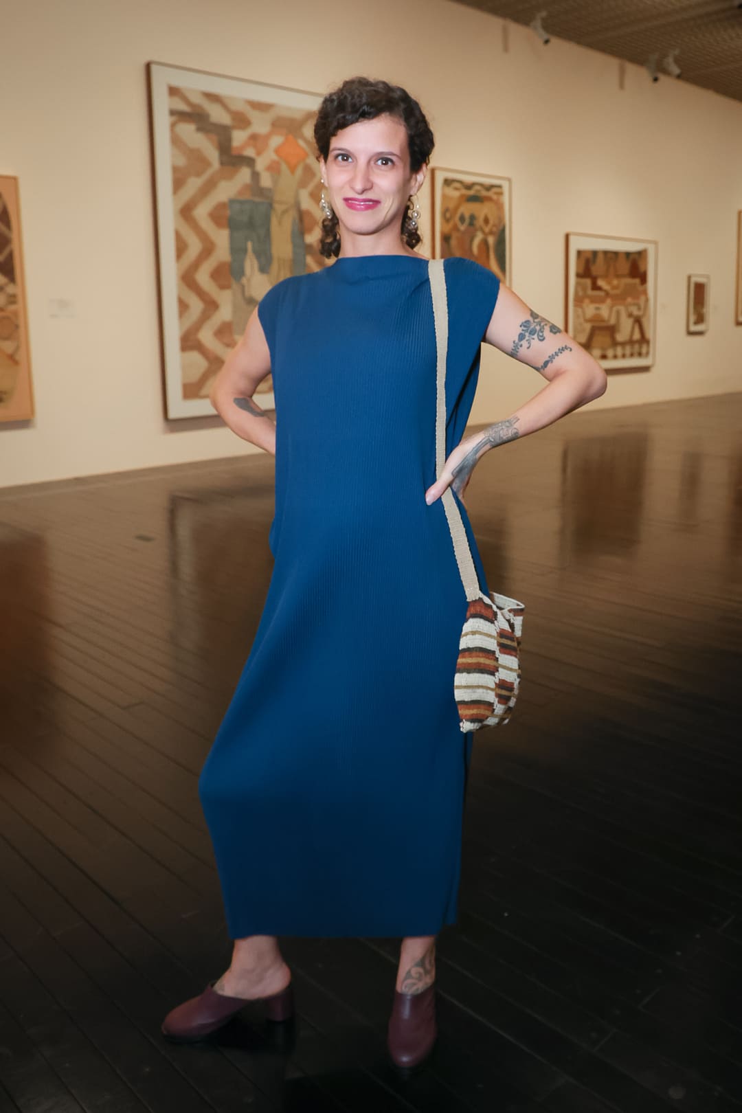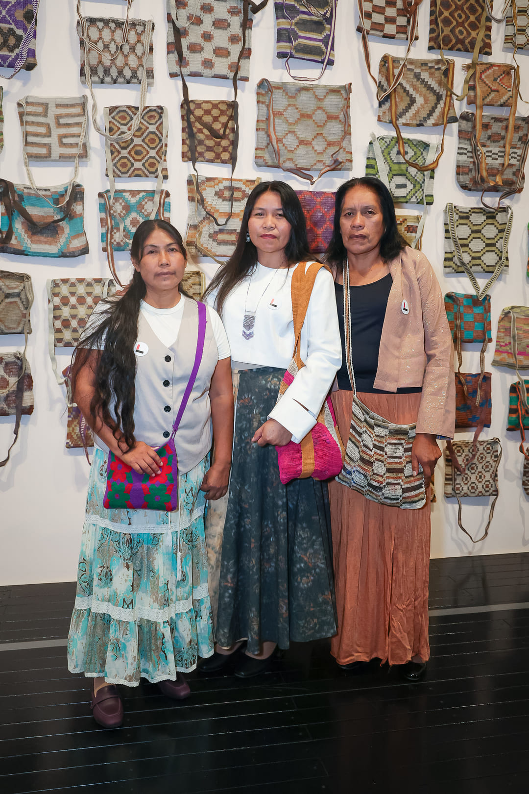 O terceiro núcleo da noite apresenta o trabalho de Claudia Alarcón em colaboração com Silät, coletivo formado por mulheres do povo Wichí. As obras têxteis exibidas partem de técnicas ancestrais e transformam o ato de tecer em linguagem artística contemporânea, conectando memória cultural, território e experiência coletiva.