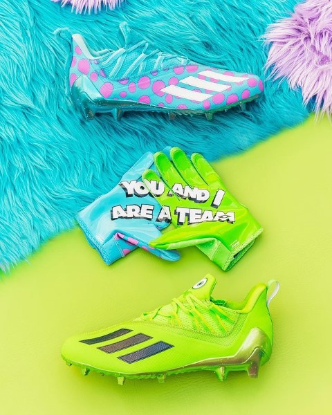 Para começar, o modelo Dame 7 EXTPLY, tênis do Sullivan, é azul e conta com algumas manchas roxas espalhadas, assim como o personagem. Além disso, tanto a parte do calcanhar quanto a língua do sapato são de pelúcia. O tênis D.O.N Issue 3, de Mike Wazowski, é verde fluorescente e os detalhes incluem uma linha preta ondulada, o único olho do personagem na língua do calçado e a frase “Você e eu somos uma equipe”.
