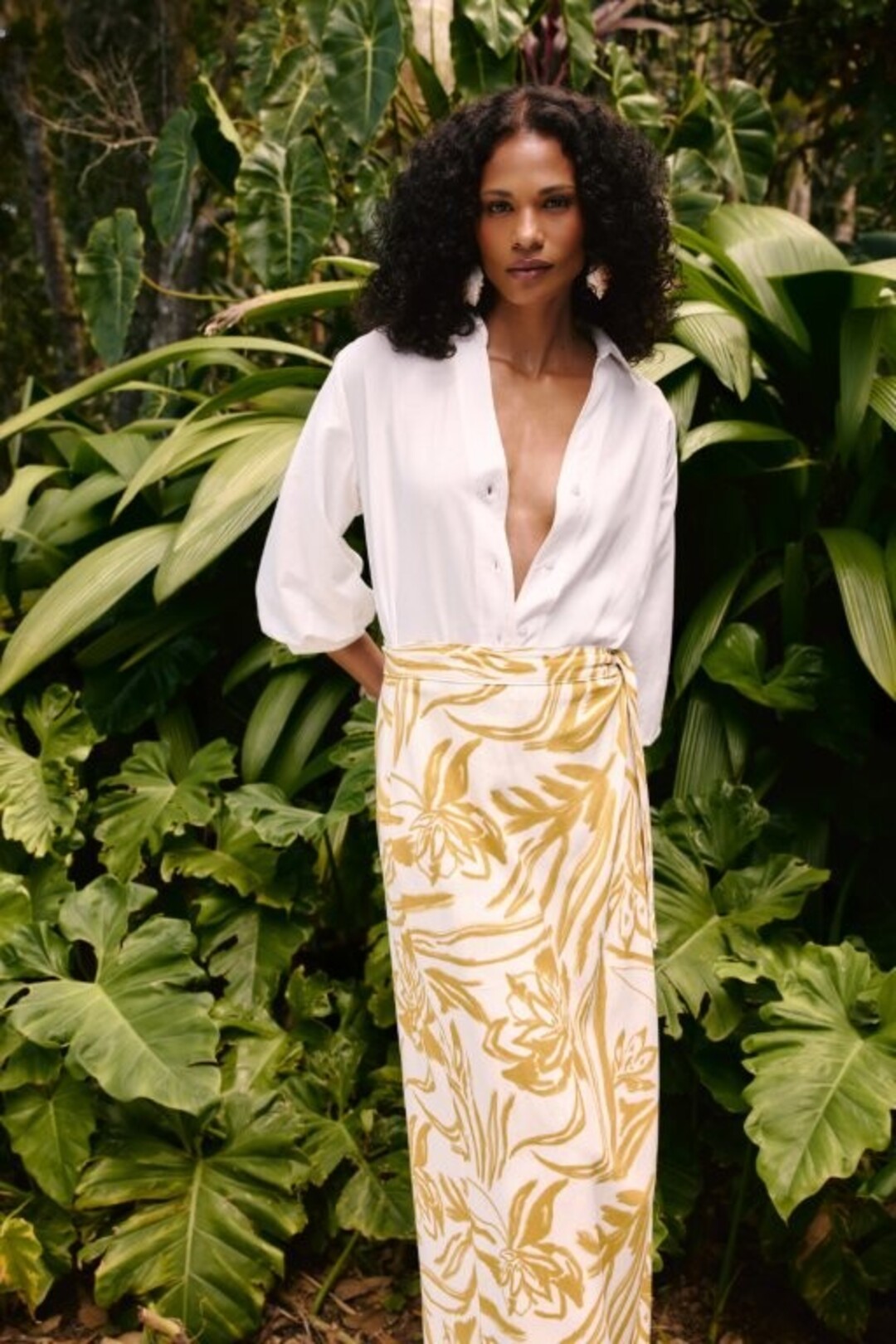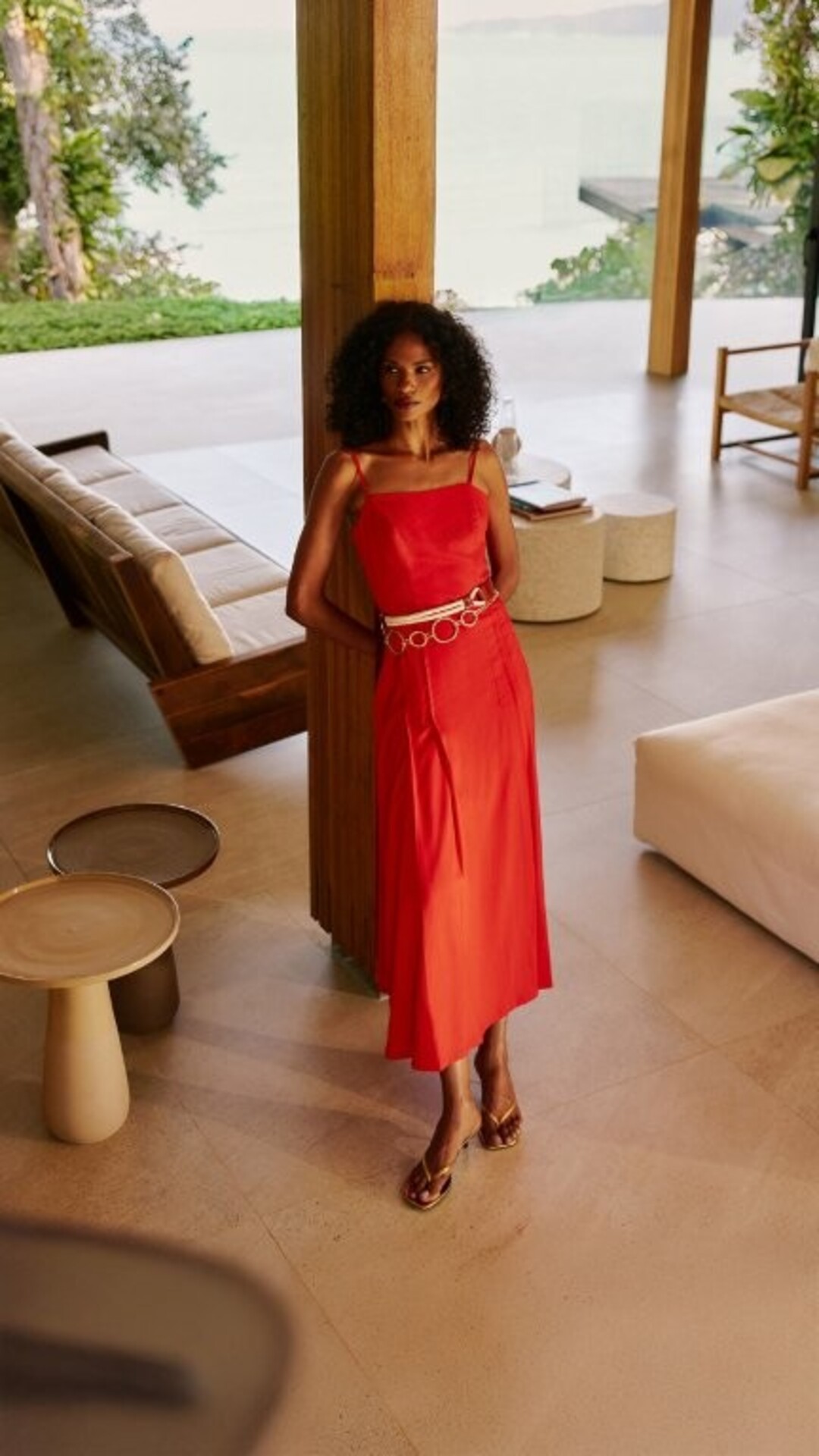 As saias midi ocupam um lugar estratégico no armário cápsula. O comprimento intermediário garante mobilidade e permite múltiplas leituras, do dia à noite. Em tecidos fluidos ou mais encorpados, elas acompanham diferentes propostas e reforçam a ideia de peças que permanecem relevantes, independentemente da estação.