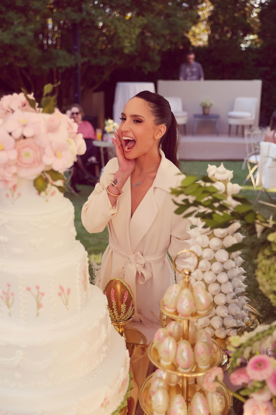 A ambientação seguiu uma proposta delicada e acolhedora, inspirada em um tradicional chá da tarde europeu. Tons de rosa dominaram a decoração e criaram um cenário elegante, alinhado ao universo estético da marca. Para completar a experiência, os convidados foram recebidos com doces temáticos assinados pela confeitaria mineira de Mariana Laender, que trouxe um toque afetivo e sensorial à celebração.