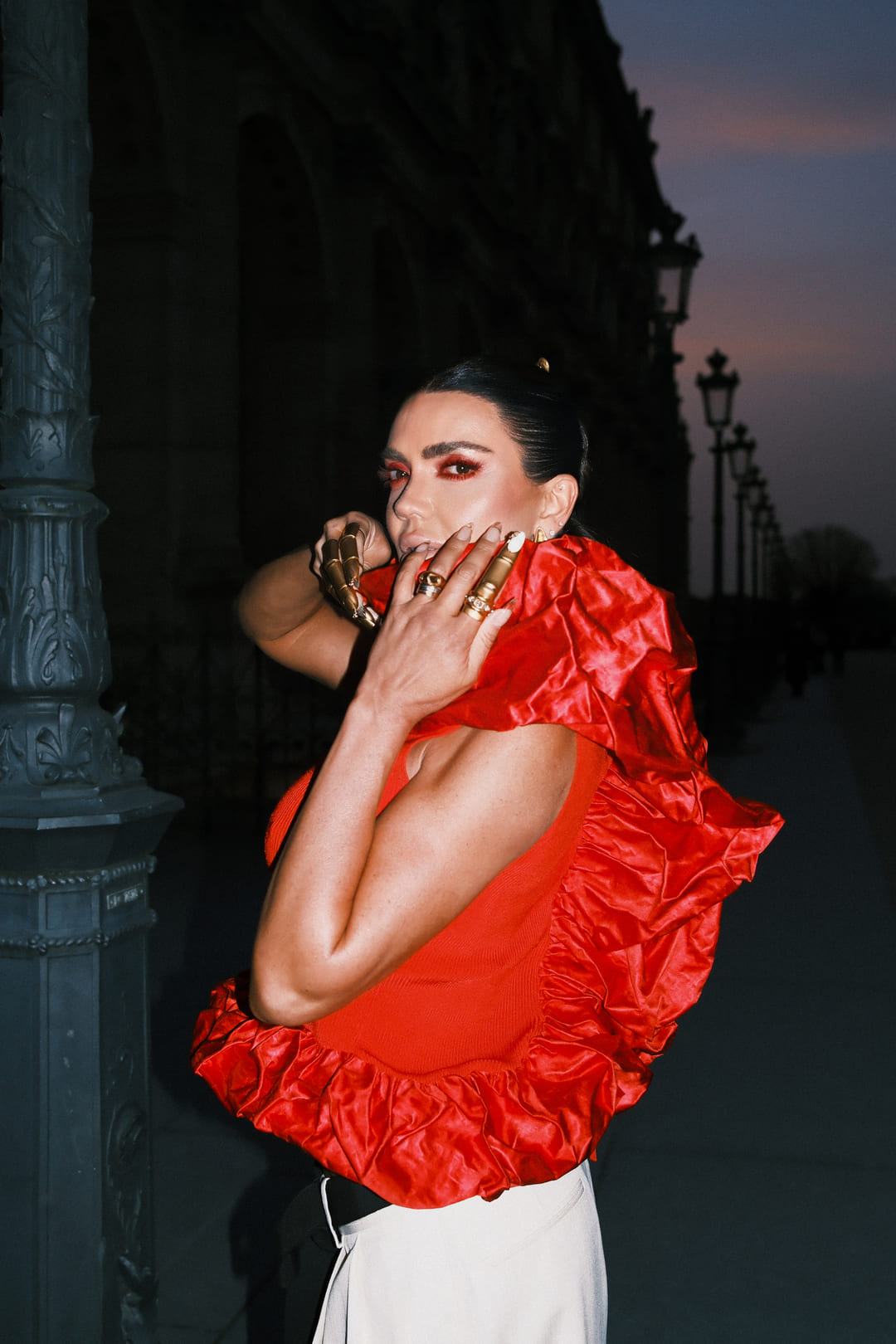 Conhecida por acompanhar de perto os principais momentos da moda internacional, Cinthya reforça sua presença no circuito fashion ao participar de um desfile que traduz a essência artística e provocadora da maison francesa.
