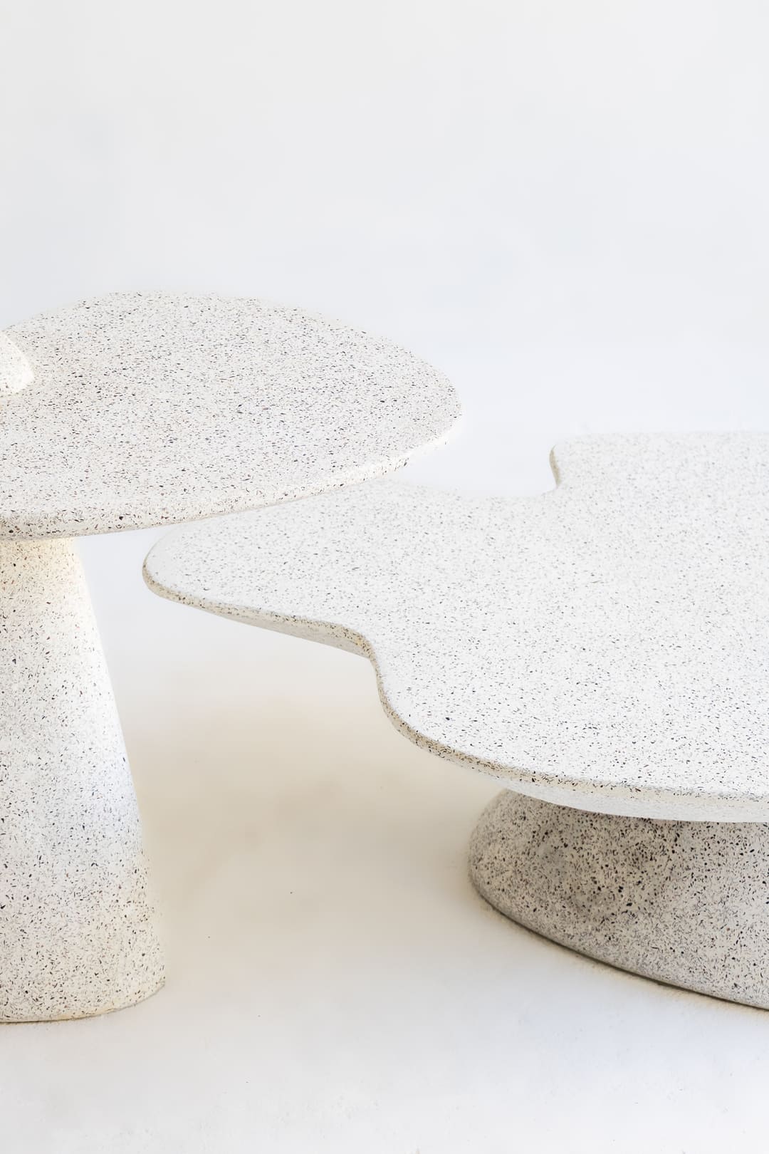 O projeto foi concebido como um conjunto articulado. As mesas de centro partem de uma base comum, solução que favorece o aproveitamento de moldes e amplia as possibilidades de composição nos ambientes. Já a mesa lateral, de proporção mais compacta, foi pensada para circular com facilidade entre diferentes usos — ao lado do sofá, da poltrona ou integrada ao conjunto principal. Essa lógica revela um olhar atento tanto à forma quanto à funcionalidade do mobiliário.
