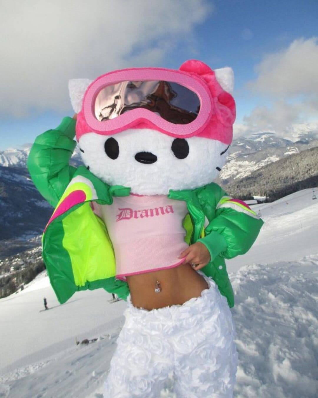 Além disso, a criadora leva sua habilidade no esqui para dentro da narrativa de moda. Ao descer as pistas, ela transforma o esporte em performance e styling, desfilando looks icônicos enquanto incorpora personagens que dialogam com a geração Z, o street style e referências da cultura pop.