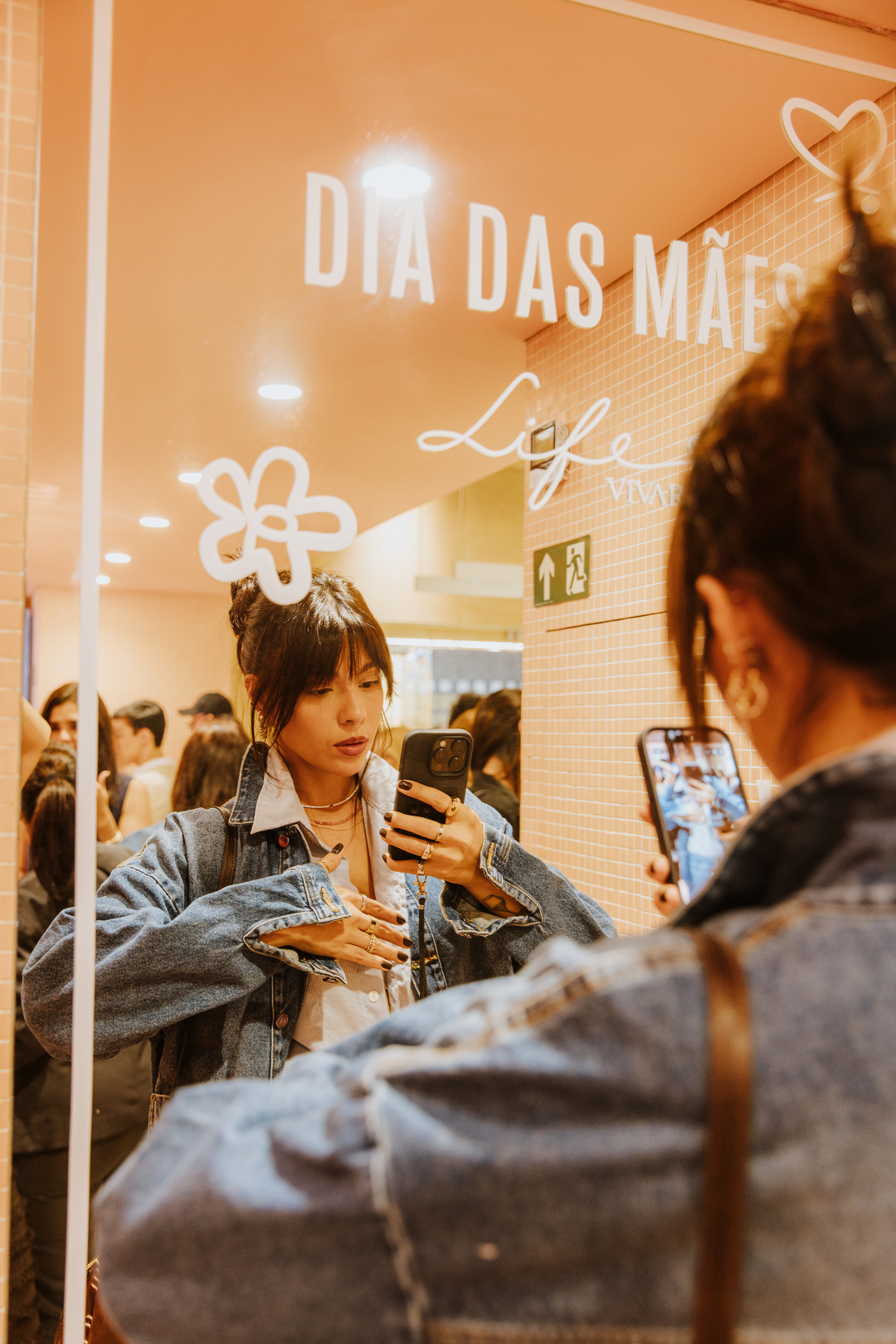 Além disso, a loja recebeu uma ambientação temática dedicada ao Dia das Mães, criando um cenário que convidava o público a acompanhar de perto a experiência. O espaço também contou com DJ, personalização de jaquetas e momentos dedicados à imprensa, ampliando o caráter interativo da ação.