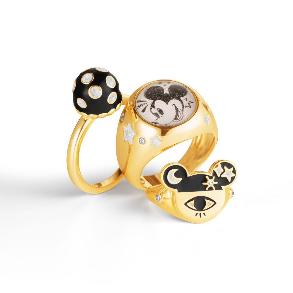 Para recriar os simpáticos camundongos, a joalheria convidou a artista Ana Strumpf, que trouxe seu estilo multicolorido, gráfico e lúdico para as peças. “A Life veio para encorajar a autoexpressão e trazer um olhar cool e moderno. Essa coleção reflete isso e nos conecta com o universo lúdico da Disney e a criatividade da Ana. Celebrar os 100 anos de uma história tão mágica, através das nossas joias, é muito especial”, diz Marina Cirelli, diretora de marketing da joalheria.