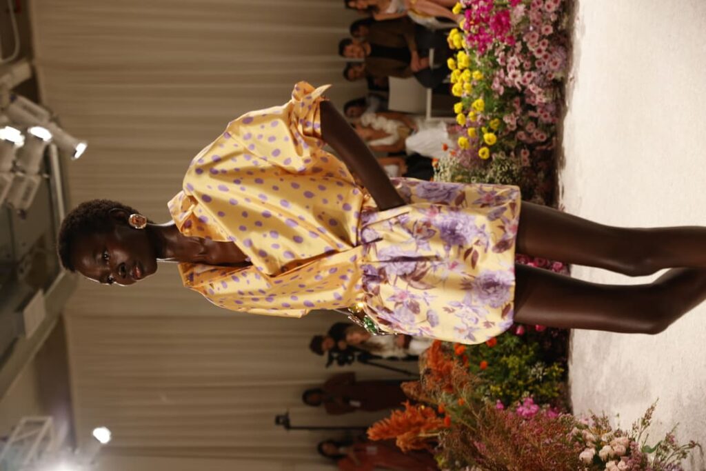 O desfile também apresentou a flor de lótus como novo ícone da marca, metáfora do florescimento feminino. Ela aparece nos vestidos, nos aviamentos e nos sapatos — estes últimos marcando a estreia da linha de calçados PatBo.
