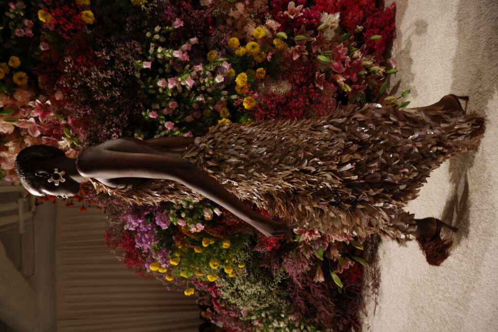 A paleta de cores transitou entre os tons terrosos, que remetem às origens, e cores expansivas, símbolo da mutabilidade da vida. Tecidos como tule, tafetá, jersey, rendas bordadas e transparências criaram um jogo visual entre revelar e proteger.