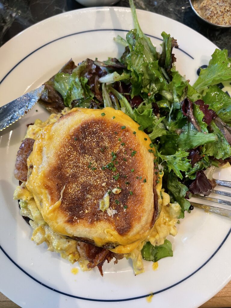 Para quem quer um prato clássico de brasserie, a entrecôte com batatas fritas é a pedida ideal, acompanhada de uma bebida para uma experiência verdadeiramente parisiense. E, claro, nenhum brunch estaria completo sem uma sobremesa: a profiterole da casa, que é servida com generosidade, encerrando o brunch com uma nota doce e irresistível.