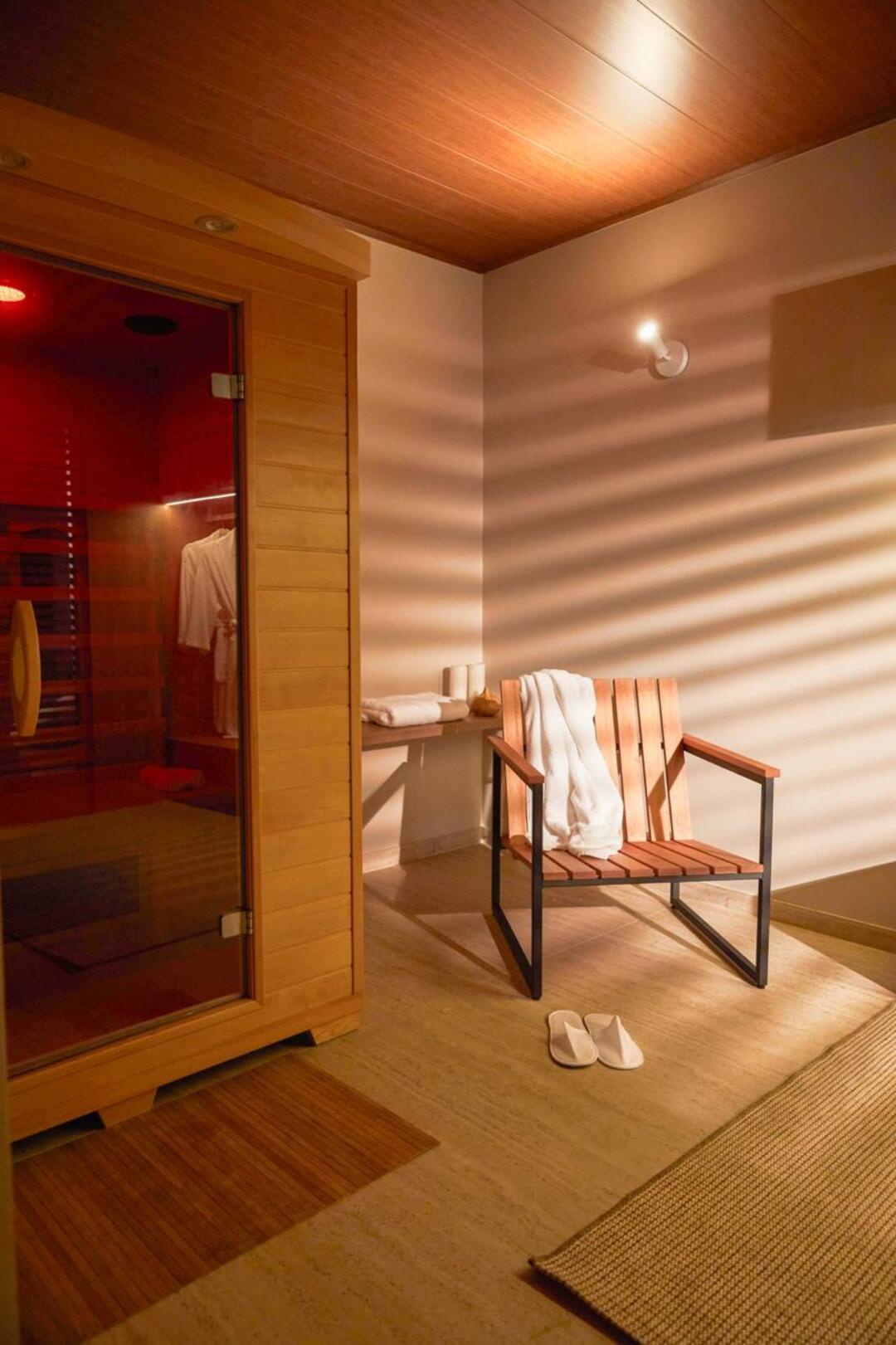 - Sauna infravermelha privativa e jacuzzi: para derreter o cansaço do palco.