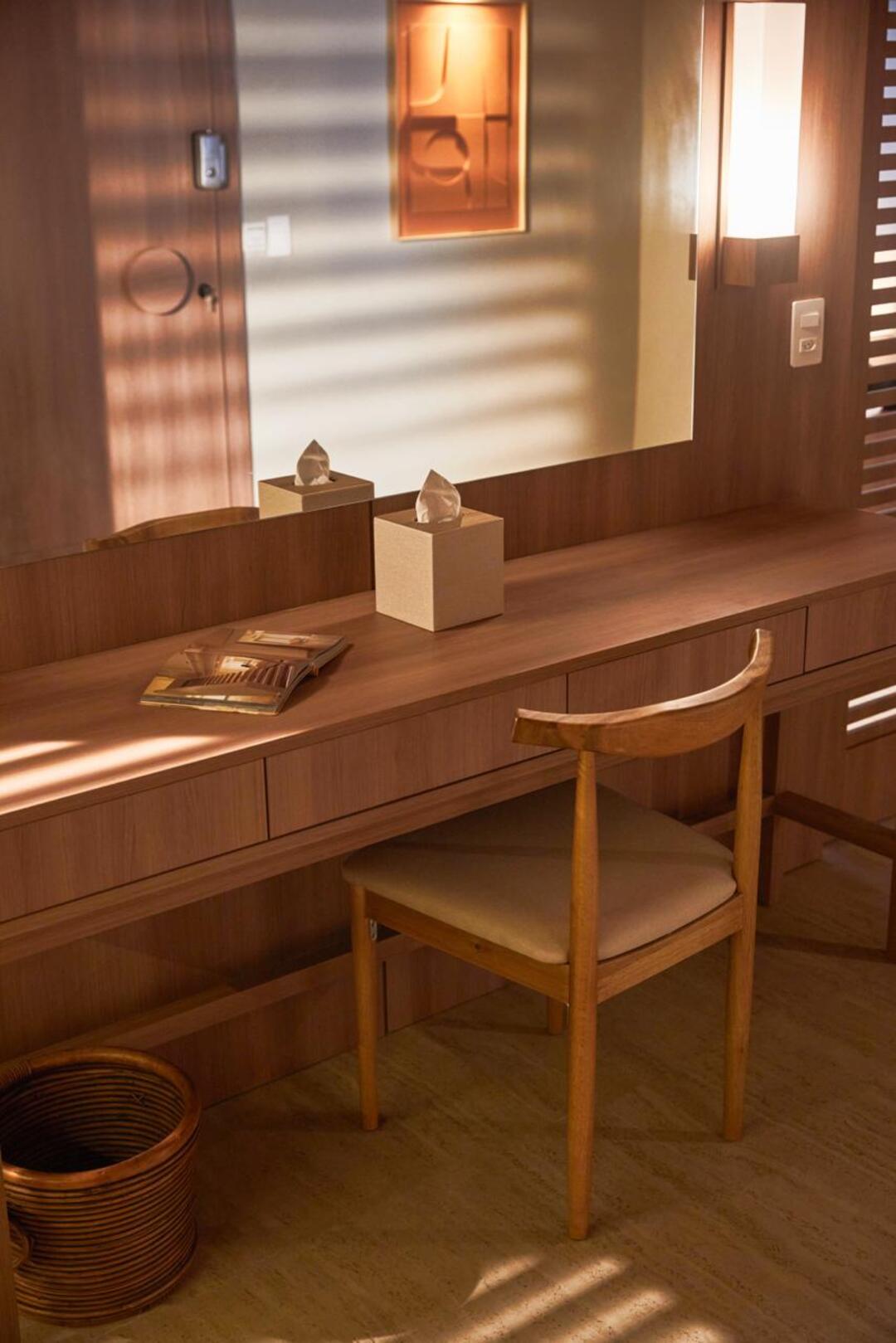 A casa é dividida em dois apartamentos que são verdadeiros templos de autocuidado. Estávamos equipadas com: