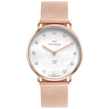 Para quem não dispensa um bom acessório para dar aquela pitada de estilo em um look casual, o modelo da Technos Slim Rosé, resistente à água em até 50 metros, é uma escolha certeira. Sutil e elegante, seu mostrador de madrepérola e aplicação de pedras dão um charme extra ao relógio.