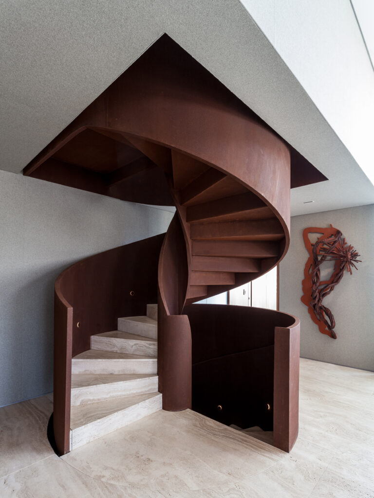 “Eram muitos compartimentos, que refizemos para criar um espaço mais funcional e moderno. A antiga cozinha foi transformada em espaçosa sala de jantar, enquanto uma grande área de serviço foi convertida em cozinha contemporânea, mantendo a área de serviço generosa. A circulação vertical foi repensada, unificando os três andares por um único ponto de acesso em cada pavimento. A área social, incluindo o espaço gourmet e lazer, foi integrada para criar espaços amplos e convidativos. Os elementos de revestimento, o mobiliário brasileiro e italiano e as obras de arte envolvem, num equilíbrio, as questões técnicas antecessoras, viabilizando o conforto e o bem-estar, sem que se perca a personalidade vibrante dos clientes”, explica David sobre métodos usados no trabalho.