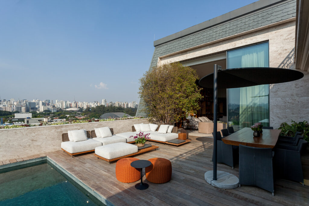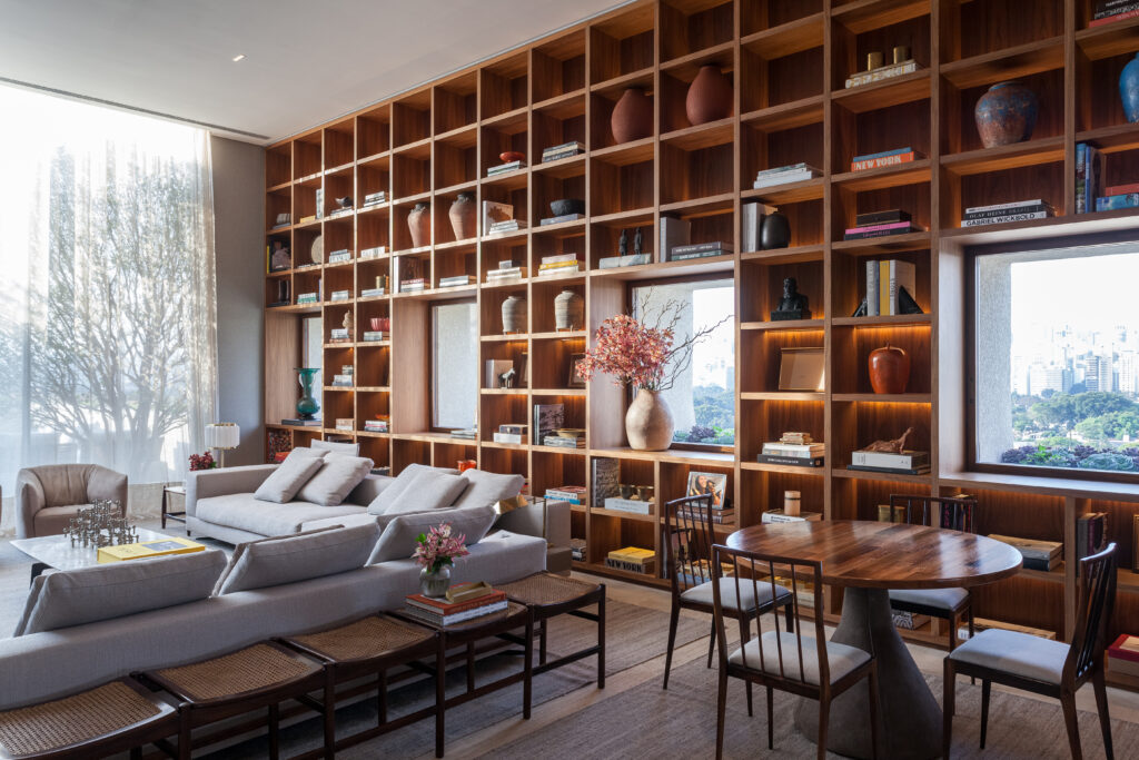 Localizado em São Paulo, no Jardim Paulista, este apartamento em edifício neoclássico perto do hotel Unique possui 1057 m² e passou por uma reforma para atender as necessidades de um jovem casal. O projeto incluiu ajustes nas esquadrias, aberturas externas e a criação de um espaço social que se integra à cidade.