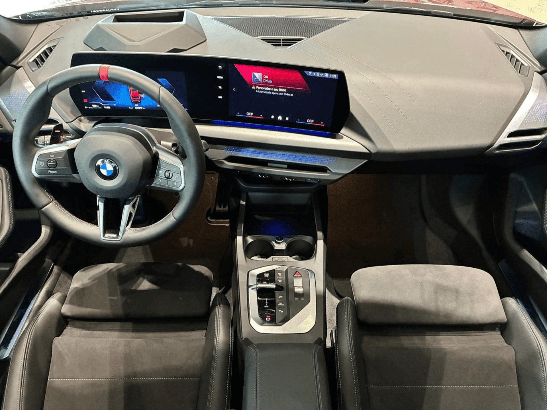 O interior também aposta em uma atmosfera tecnológica. Detalhes em alumínio com retroiluminação criam efeitos de cor no painel, enquanto o BMW Live Cockpit Professional integra informações do veículo e navegação em uma interface digital intuitiva.